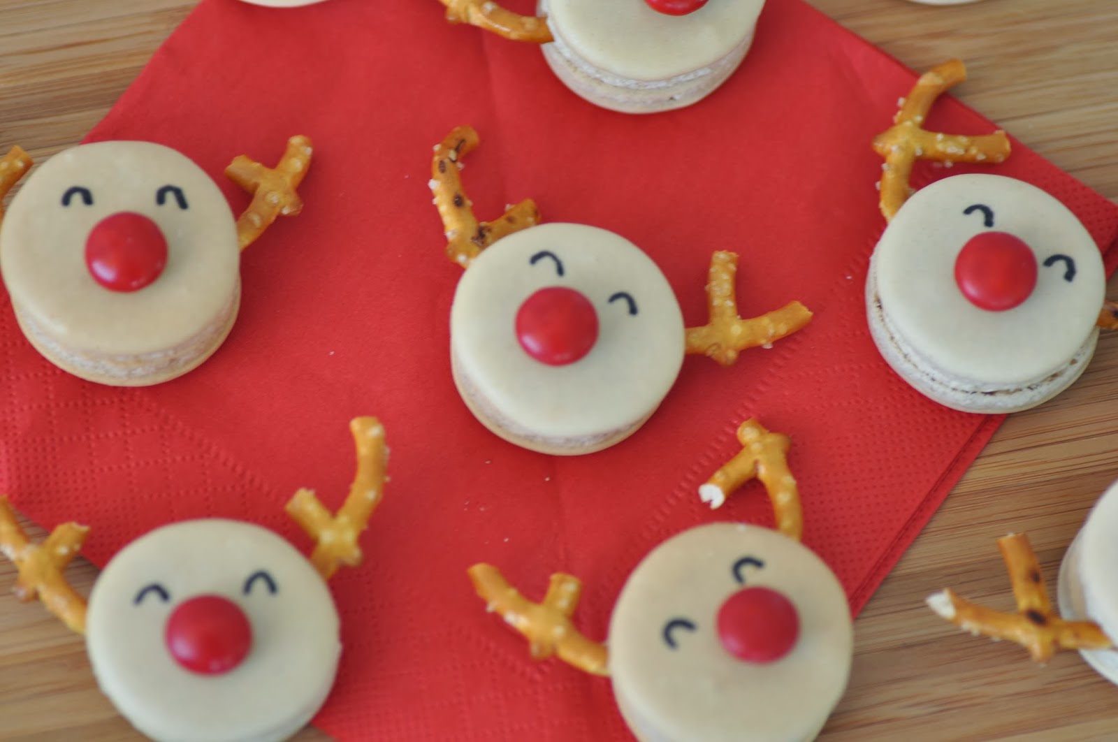 Like my snowman macarons, these were originally faceless. However, with a trip to the shops, I purchased an edible marker pen so that I could paint eyes on these reindeers which gives these macarons so much more character!